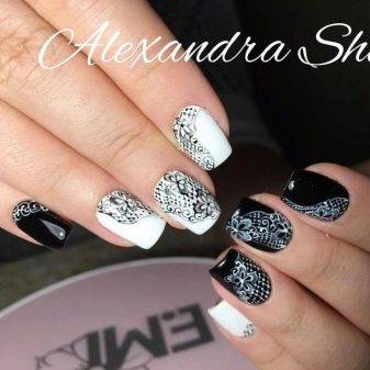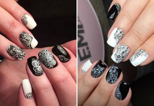 Важно! Ажурный рисунок в таком случае лучше делать в классическом белом или черном цветах. Он добавит маникюру утонченности, нежности и аккуратности