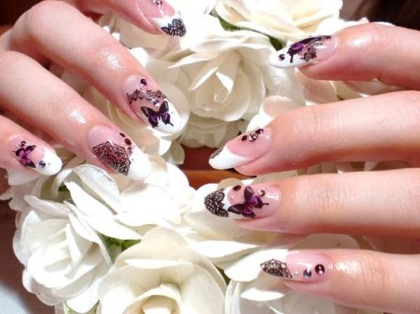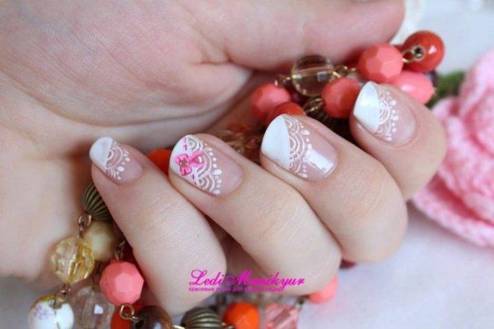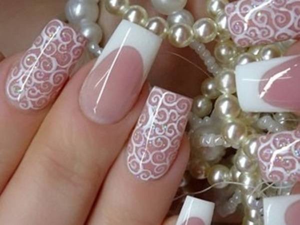 Чаще всего для формирования целостного женственного образа узоры делают белым цветом на розовой или прозрачной основе. Это невероятно романтично!