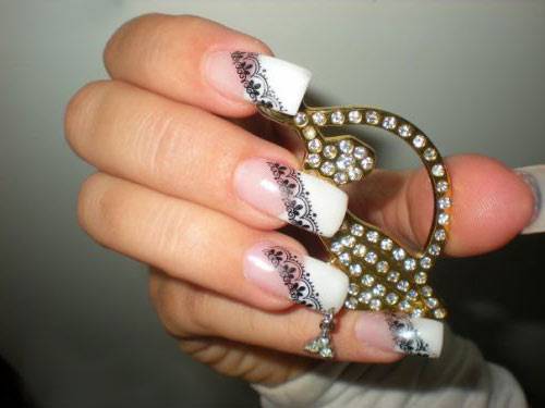 Для торжественного случая белый ажурный френч можно дополнить миниатюрной акриловой лепкой или стразами, соблюдая, конечно же, чувство меры.