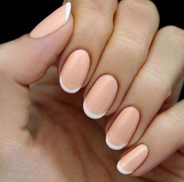 Классический дизайн, который как нельзя лучше подчеркнет вытянутую форму ногтя, а маникюр в целом сделает нежным и аккуратным. В данном случае свое предпочтение можно отдать, как классическому исполнению френча, так и более креативным вариантам в виде дизайнов с размытой границей или со смещением линии улыбки в бок.
