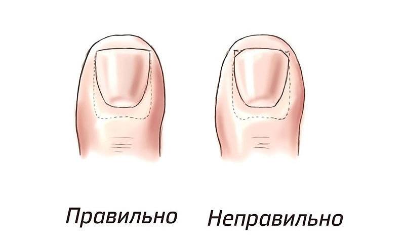 Естественная толщина ногтевой пластины не должна превышать 1 см. Если этот показатель выше, то следует обратиться за специализированной помощью. Правильная ногтевая форма имеет вид квадрата с закругленными углами. Это делается для того, чтобы они не могли поцарапать или порвать колготки. Не рекомендуется отращивать ногти на ногах больше, чем на полсантиметра. Для придания эстетического лоска ноготь принято покрывать тонким слоем прозрачного лака.
