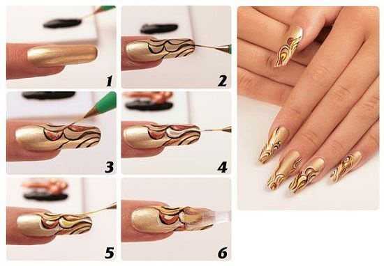 получения красивого рисунка на ногтях при помощи иголки зависит от быстроты его выполнения. Все рисунки выполняются на мокром лаке. Когда лак начинает подсыхать, удачного смешения лаков достичь не получиться.