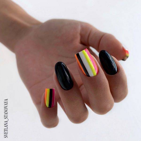 Невероятные, ярко-кислотные и светящиеся неоновые краски снова ворвались в нейл-арт, оказавшись на пике популярности. Смелые, эпатажные сюжеты, выполненные в броской манере, создают беззаботное отпускное настроение, прекрасно подходят для молодежного лука и всевозможных вечеринок. Девушка с такими ноготками точно не затеряется в толпе!