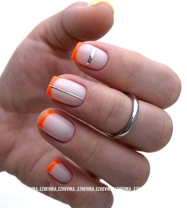 На сезон весна-лето в маникюре тренды задают яркие цвета. Френч тоже не останется без таких акцентов. Кончики ногтей в полоску или в оттенках фуксии, лайма, небесного синего, любые нестандартные сочетания цветов сегодня актуальны. Можно смело решаться на эксперименты.