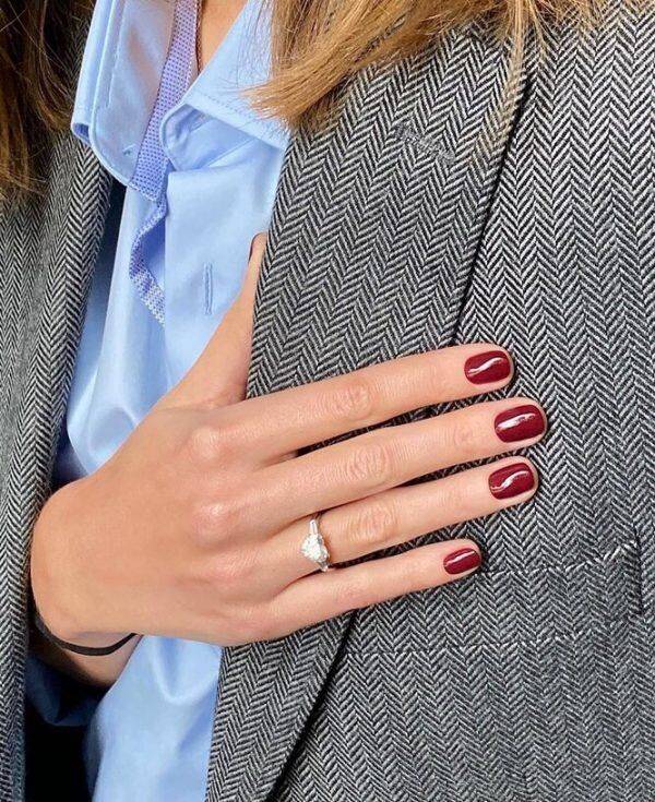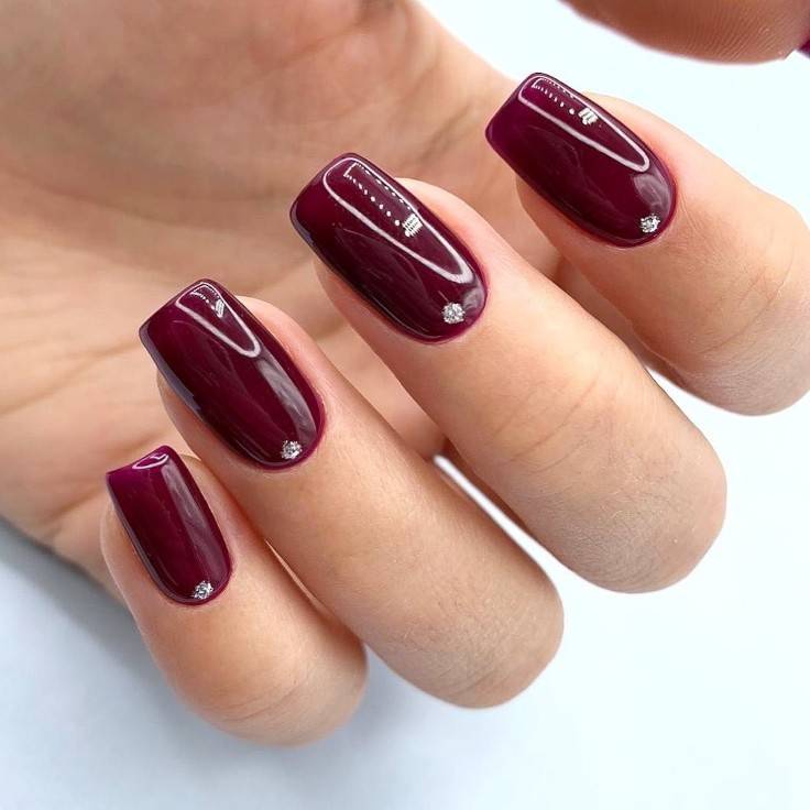 Кроме того, чтобы привлечь внимание к своим пальцам, ему не нужно много фантазийного нейл-арта. Выбирайте матовый или глянцевый лак или нанесите немного мерцающего лака поверх баклажанового базового покрытия для тех, кто хочет добавить блеска в свой образ