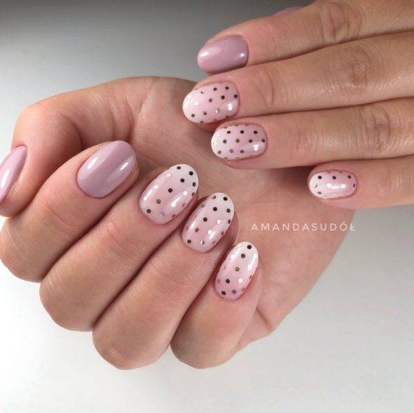 Весенний маникюр на короткие ногти с лунным дизайном