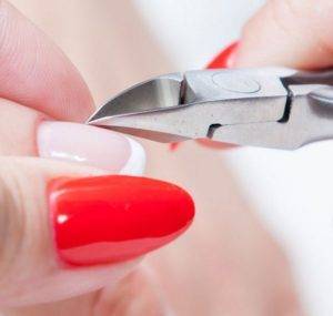 При наличии заусенцев или отмершего эпидермиса их надо срезать под углом. Но щипчики надо использовать точечно – там, где есть неровности. После устранения кожицы ноготь смазывают с помощью питательного крема, а инструмент надо обработать.
