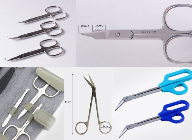 Для удаления кутикулы, заусенцев и очищения пазух боковых валиков используют ножницы с изогнутыми полотнами и заострёнными концами.