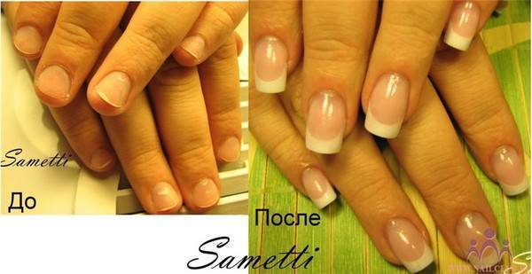 Однако и здесь существуют подводные камни. Исправить форму ногтя и направить рос пластины в нужно русло способно только грамотно проведенная процедура наращивания и, естественно, сделанная не единожды. Непрофессиональная процедура может нанести только вред, а форма ногтя будет безнадежно испорчена, на исправление которой может уйти немало времени. К чему может привести неграмотно проведенная процедура наращивания? Отхождение пластины от ногтевого ложе, уплощение ногтей, неправильное направление их роста и др. малопривлекательные последствия могут надолго испортить ваши ноготки.