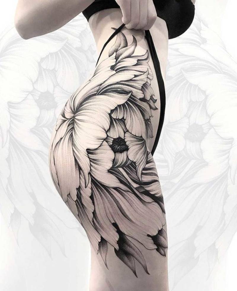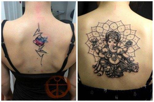 Хорошо смотрятся и маленькие лаконичные рисунки, и невообразимо-фантазийные творения. Частый мотив – звери и цветы. Если хочется совсем оригинального, выбирайте эскизы для тату без волков, пионов и львов, они на пике популярности.