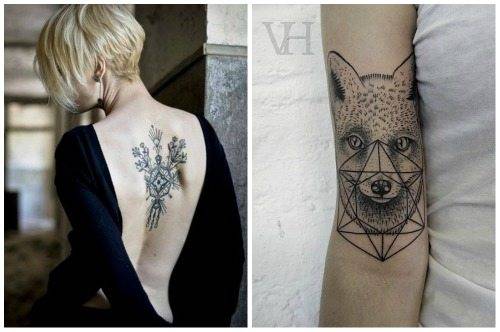Симпатии девушек получила лайнворк лиса. Чаще всего она изображается в движении. Половина тела животного может состоять из геометрических фигур, вторая реалистично изображает анатомию животного.