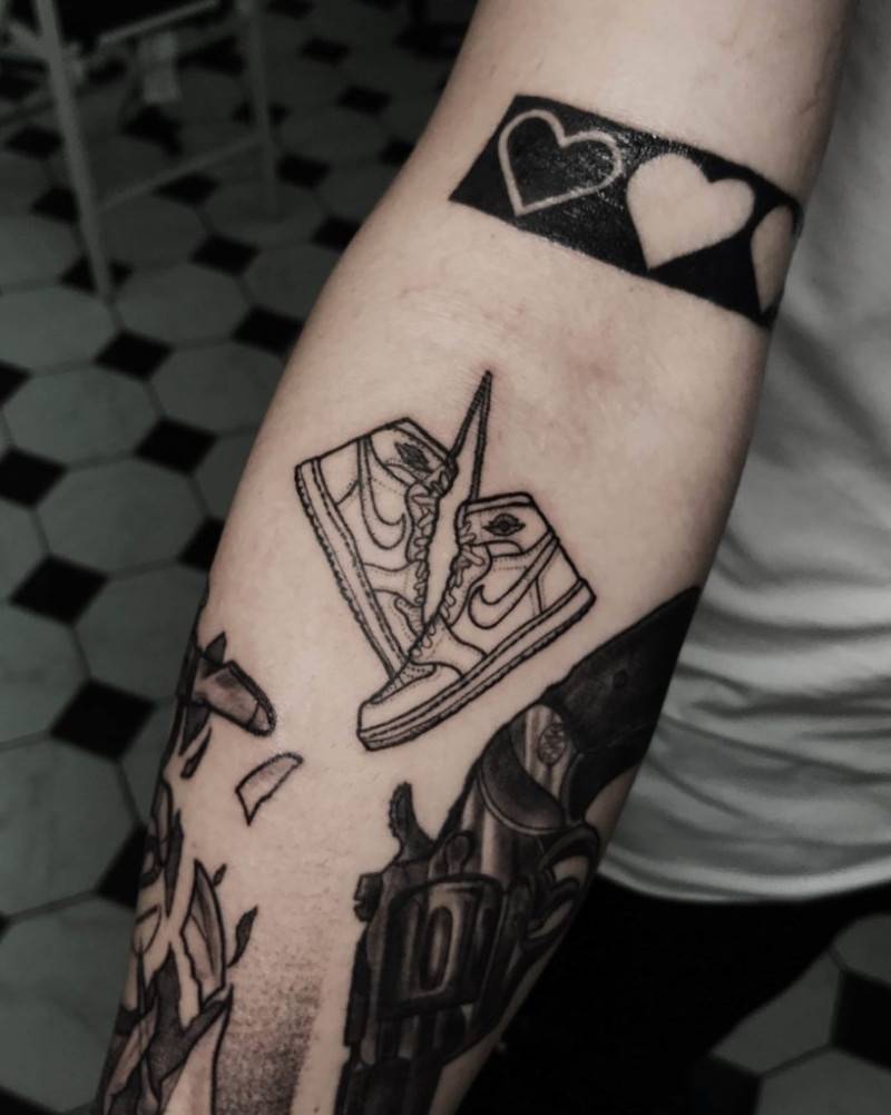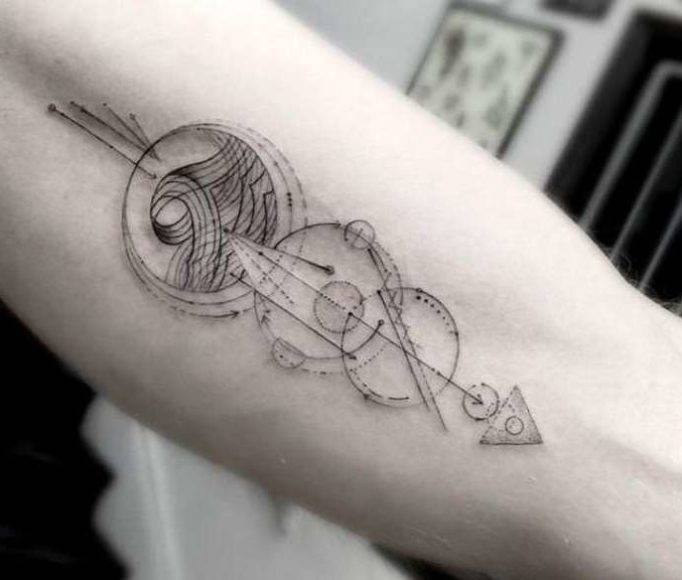В области предплечья, плеча эффектно смотрятся как одиночные изображения, так и масштабные картины в разных стилях. Популярны реализм, треш полька, абстракция, нью скул, традишнл. Рука идеально подходит для парада небесных тел. Зона запястья оптимальна для тату планет в стиле минимализм.