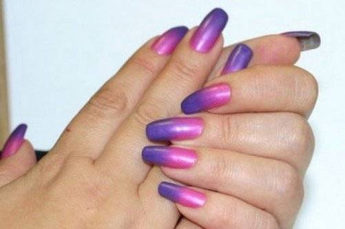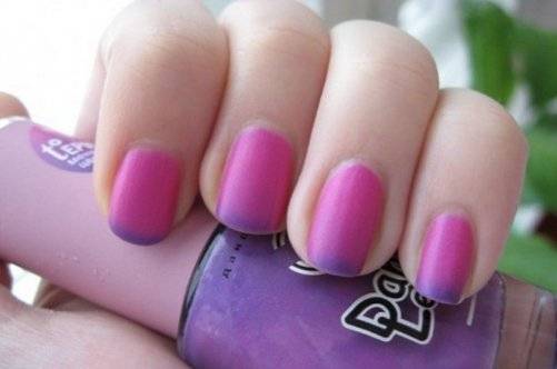 На данный лак можно наносить финишное покрытие, под него — основу. Он достаточно стойкий. При аккуратном обращении покрытие может продержаться и до недели. Существуют термо-лаки с плавным переходом двух цветов, а также трех.