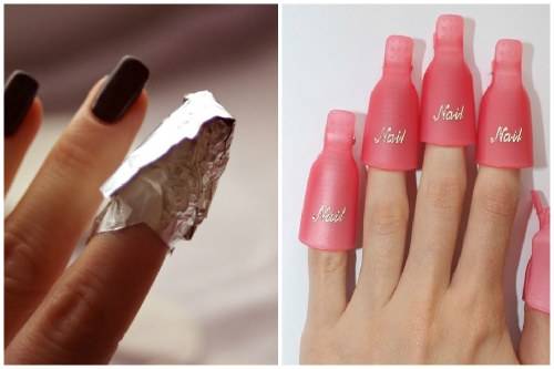 - Безболезненно удалить гель-лак можно при помощи самых обычных предметов: фольги, спонжа и жидкости для снятия лака. По отзывам фанатов D’legend, неплохие результаты дает применение разбавителя для лака. Смоченный жидкостью спонж оберните конусом вокруг ногтя. Сверху закрутите фольгой (как показано на фото) и оставьте на 20 минут. Время выдержки зависит от качества выбранного средства для снятия лака. Размягчённая таким образом лаковая пленка снимается без остатков.