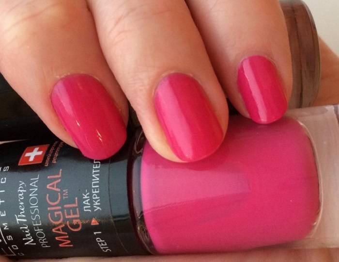 - Еще одно достоинство — это средство можно носить как вполне самостоятельное покрытие, ногти выглядят вполне аккуратными, красивыми и не голыми.