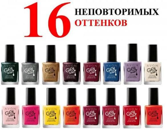 Благодаря множеству модных цветов лак «Эффект гель-лака без УФ-лампы» популярен среди покупательниц косметики Эйвон. На страницах каталогов вы найдете: