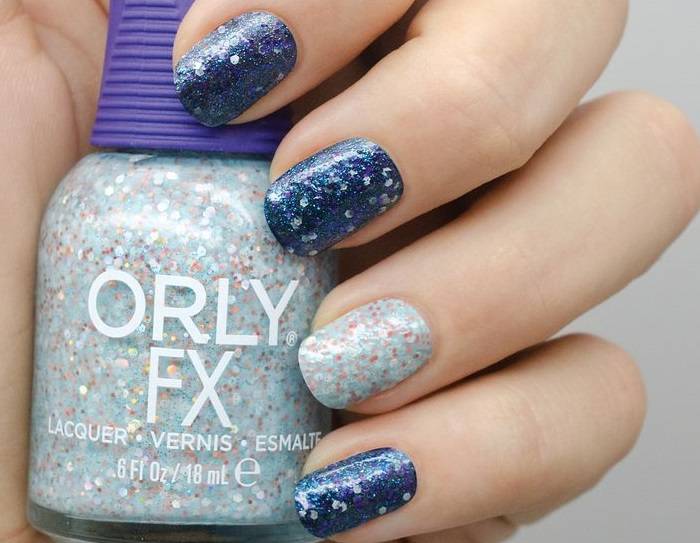 В линейке Galaxy FX представлены лаки с цветными и блестящими частицами.