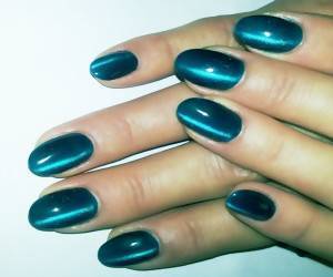 Маникюр с обычным лаком, в состав которого входит металлическая пыльца, делается гораздо быстрее, чем дизайн с гель-лаком. Но держится такое покрытие намного меньше. Специалисты рекомендуют новичкам осваивать технику кошачьего глаза на обычных лаках. Ведь в случае неудачного маникюра его легко можно удалить с помощью специальных средств.