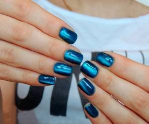 Маникюр с бликом можно выполнить, применяя гель-лак с металлическими частицами или обычный магнитный лак. Но в любом случае сначала следует ногти подготовить, чтобы дизайн выглядел максимально эффектно.