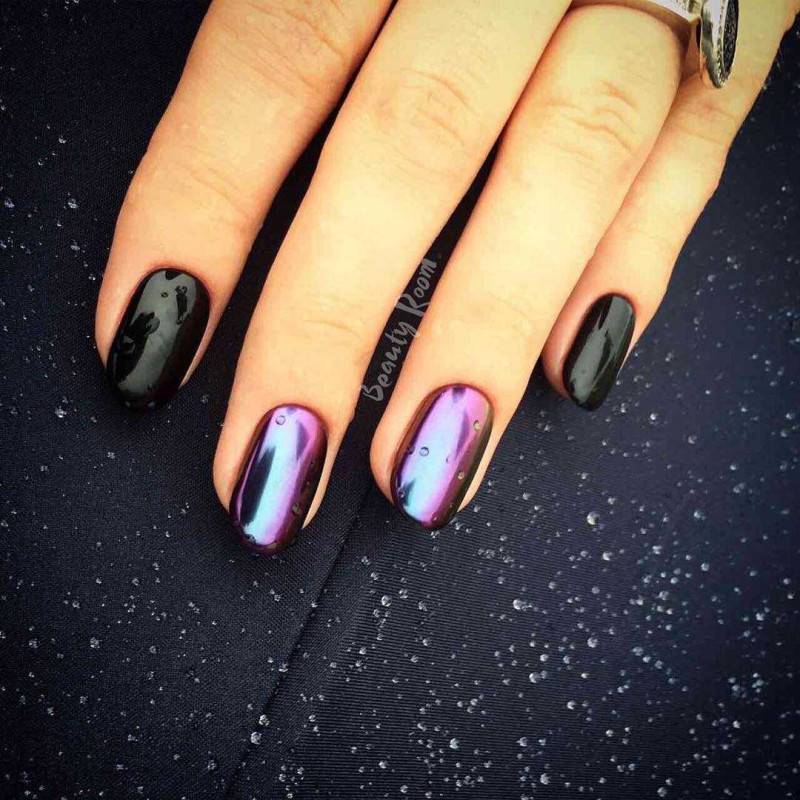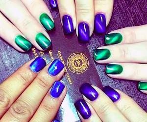 На фото показан дизайн, выполненный двумя цветами, каждый из которых по-своему прекрасен. Магнитный гель-лак применяется точно так же, как и обычный гель-лак.