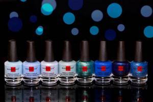 Недавно в свет вышла коллекция под названием Blue lagoon. Название уже говорит о том, что в основной линейке имеются оттенки голубого и синего цвета. Это и нежный голубой оттенок, и синий, в составе которого может быть мелкий шиммер. Покрытие получается с глубоким цветом.