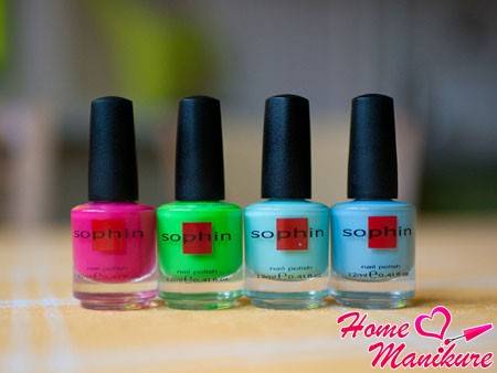 Неоновые сейчас стали выпускать с улучшенной формулой. Женщины стали говорить о том, что даже при нанесении двух слоев лака, поверхность все равно не яркая. Поэтому производители советуют делать следующую хитрость. Предварительно нужно сделать подложку из белого основания. После нанесения наверх белого полотна неонового покрытия будет смотреться точно так, как на картинке.