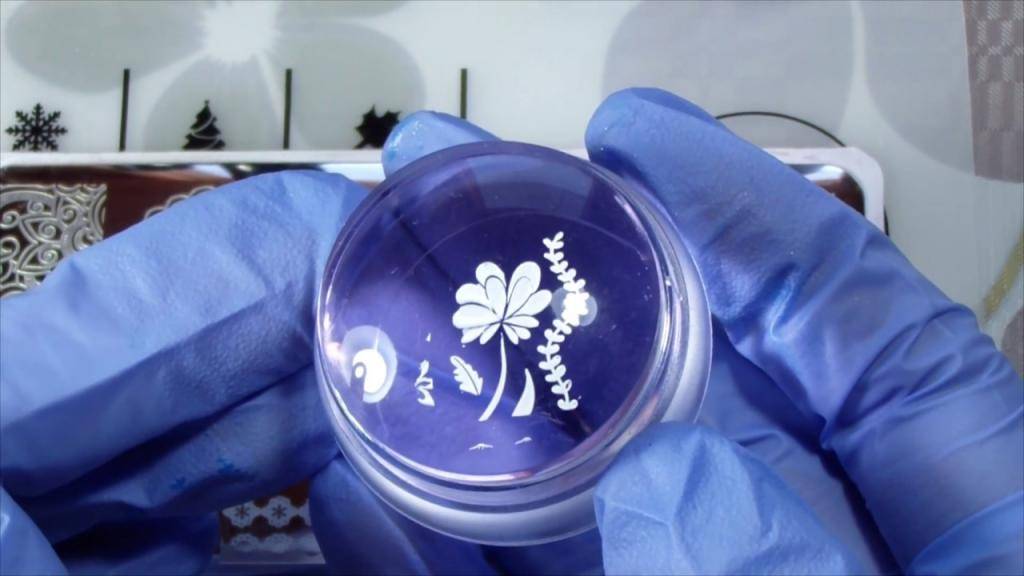 Следует выполнить два условия: понадобится прозрачная переносящая подушка, выполненная из силикона. Она позволяет контролировать попадание цветного лака в уже отпечатанный рисунок. Второе условие – наносить полупрозрачный лак на белую подложку.