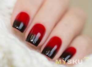 Чтобы сделать градиентный маникюр, необходимо сначала нанести обычный лак, а затем — похожий по оттенку термолак. Таким образом, один цвет начинает плавно переходить в другой.