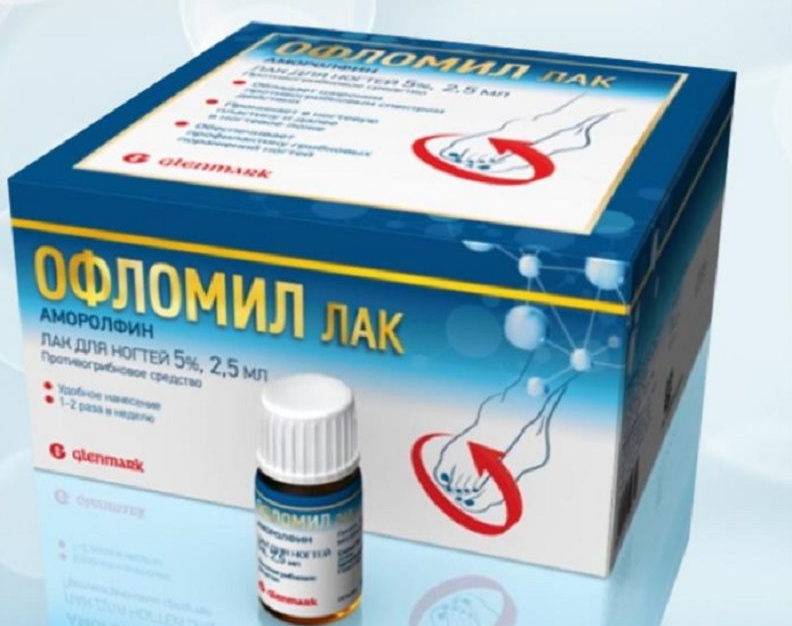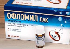 - Офломил – лак с действующим веществом Аморолфин, которое активно против дрожжевых, плесневых, диморфных грибов, дерматофитов, актиномицетов. Часто путая название лак именуют Фламилом. Эффективен, когда поражено менее 2/3 ногтевой пластины. Наносить нужно до выздоровления 1-2 раза в неделю. Противопоказания – гиперчувствительность к Аморолфину, беременность, лактация, младенческий возраст. Побочные действия – зуд, жжение, покраснение кожи вокруг ногтя. Стоимость – от 850 руб. Подробнее о лаке Офломил.