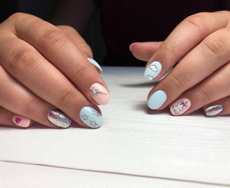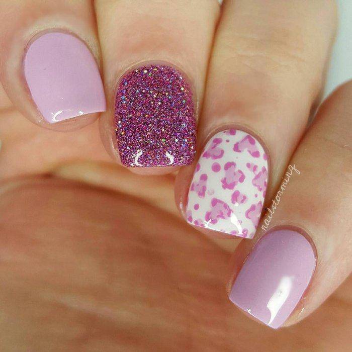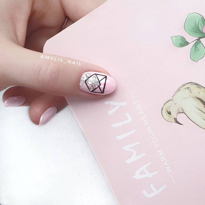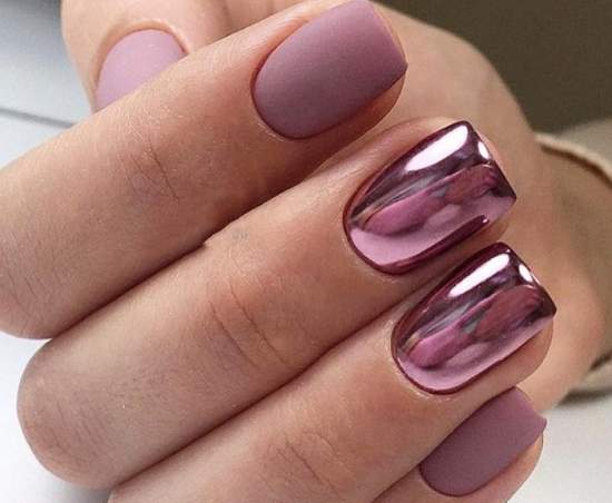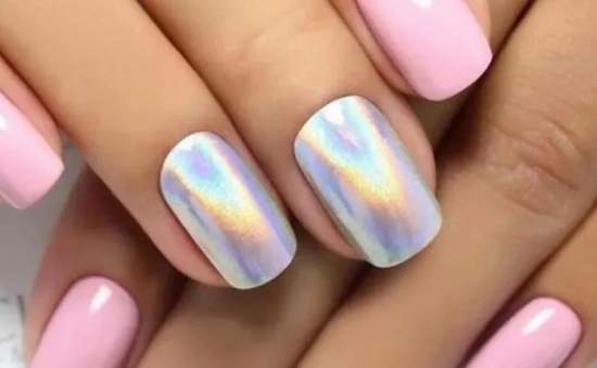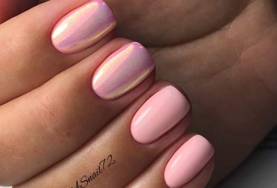 Даже на ногтях минимальной длины с помощью втирки можно создать необычный дизайн. Делая маникюр на короткие ногти, для визуального удлинения ногтевых пластин рекомендуется использовать бледно-розовые, пастельные оттенки. Такой маникюр выглядит мило и аккуратно.