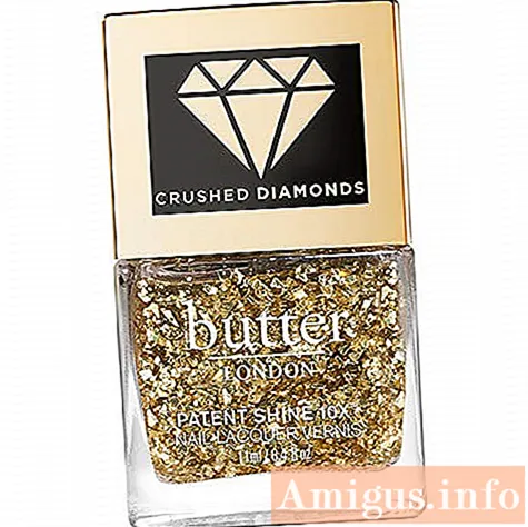 Патентный блеск Butter London Crushed Diamonds Patent Shine состоит из светоотражающего мерцания и многогранной алмазной пудры, которая обеспечивает в 10 раз больший блеск. Имеет гелеобразную консистенцию и держится до 10 дней. В этой формуле 10-в-1 используется ударопрочная полимерная технология, которая обеспечивает гелеобразную подушку для защиты и дополнительного блеска. Его ингредиенты способствуют укреплению ногтей. Этот блестящий лак для ногтей не содержит камфары, формальдегида, формальдегидной смолы, DBP, TPHP, ксилола, толуола и этилтозиламида.