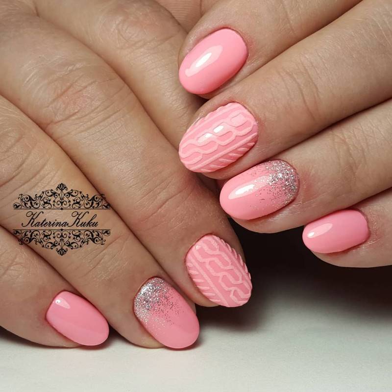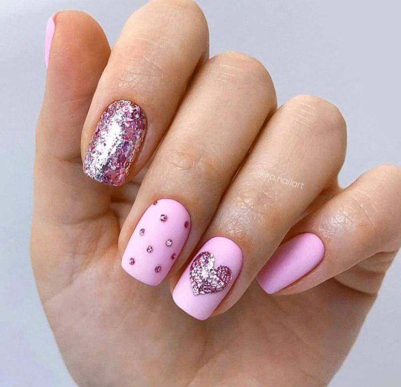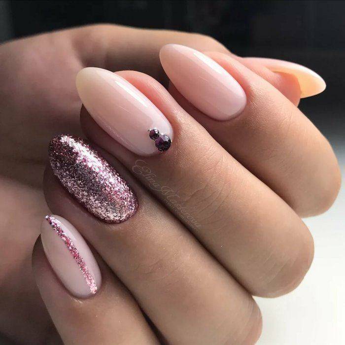 Розовый дизайн маникюра с блёстками считается прекрасной идеей оформления и для повседневного и для праздничного образа. Он невероятно нежно и женственно смотрится, даже если ваш выбор пал на яркое малиновое покрытие. Дополнение в виде блёсток лишь подчёркивает изящество розовой палитры и позволяет ноготкам смотреться более эффектно.
