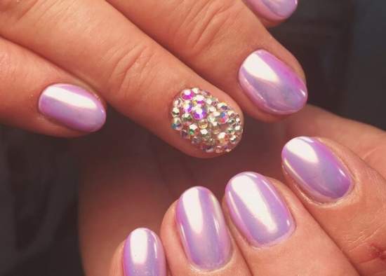 Ногти с втиркой, в зависимости от выбора оттенков покрытий и декора, могут выглядеть нежно и деликатно или ярко и задорно. Такой дизайн можно выполнить на ноготках любой длины. Женственно и утонченно мягкие переливы жемчужной втирки получатся на овальных и миндалевидных ногтях, а на квадратных ноготках стильно и лаконично будут выглядеть зеркальные переливы.