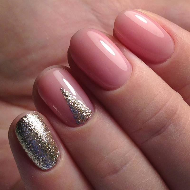 - Золотой глиттер. Распространенный цвет для украшения ногтей, который хорошо сочетается с черным и красным маникюром. На втором месте располагаются серебряные и бронзовые оттенки.