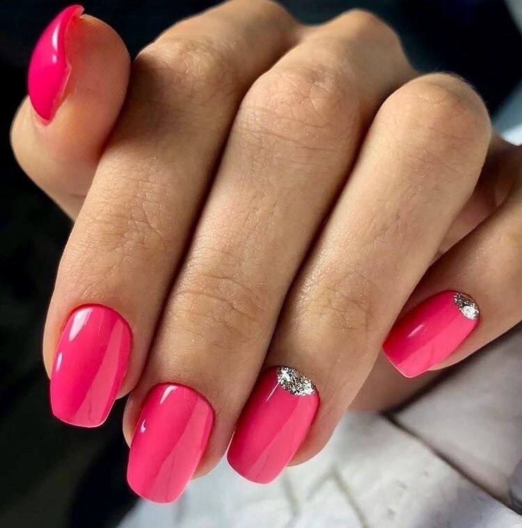 В тренде по-прежнему однотонное покрытие ногтей белым, розовым и серебряным.