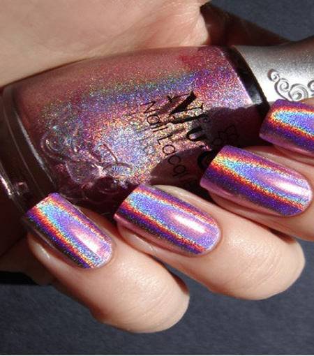 Голографические лаки – это особая группа декоративных покрытий для ногтей, которая обладает, так сказать, 3D эффектом. Эти необычные лаки для ногтей в своем составе имеют множество крошечных веществ в виде блесток, которые при особом освещении выдают привлекательный радужный оттенок. Ассортимент 3D лаком представлен в широком виде, среди которого можно не только подобрать желаемый оттенок, но и выбрать лак различной структуры (с крупными или мелкими частичками, блесками различной формы и цвета)