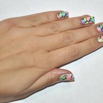 наклейку подходящего размера на каждый ноготь  это достаточно легко