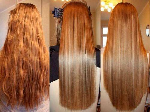 - Происходит выравнивание структуры каждого волоска.