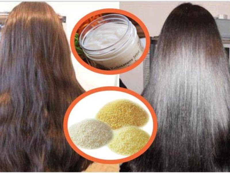 Волосяной стержень, наружная часть, на восемьдесят процентов состоит из белка, который называется кератином. Придать волосу жизненную силу можно посредством другого белка, коллагена. Ввод протеина осуществляется внешним способом при помощи специальных средств, а процедура называется коллагенированием. Эффективность меры в виде восстановленной структуры волосяного стержня зависит от размера молекул вещества. Желатин является гидролизованной формой коллагена, получают данный пептид из дермы и соединительных тканей животных. Дополнить структуру человеческого волоса желатином не получится, так как велик размер молекул соединения, но вполне возможно: