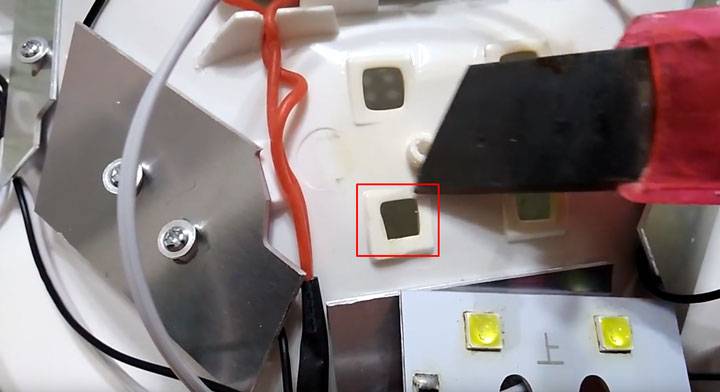 Но даже при такой модернизации, температура нагрева светодиодов всего за пару минут свечения возрастает вдвое. С комнатных 20 градусов она моментально поднимается до 40!