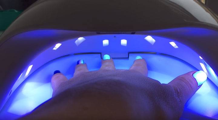 Лампа для сушки ногтей в той или иной степени излучает ультрафиолет типа А, даже если она светодиодная. От большого количества УФ-лучей страдает наша кожа. Но маникюрные лампы испускают настолько слабые излучения, что они вряд ли смогут навредить организму. Если вы опасаетесь, то минут за 20-30 до посещения салона нанесите на руки солнцезащитный крем.