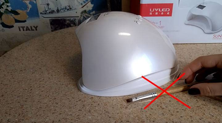Чем это чревато? Так как свет пробивается наружу, рядом с лампой ничего класть нельзя. Иначе кисть или материалы случайным образом могут полимеризоваться.