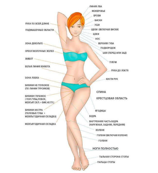 - тотальное бикини — работа с зоной лобка, половыми губами, складками между ягодиц.