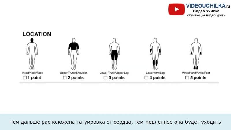 Чем дальше расположена татуировка от сердца, тем медленнее она будет уходить