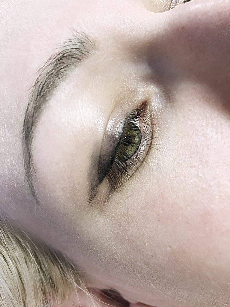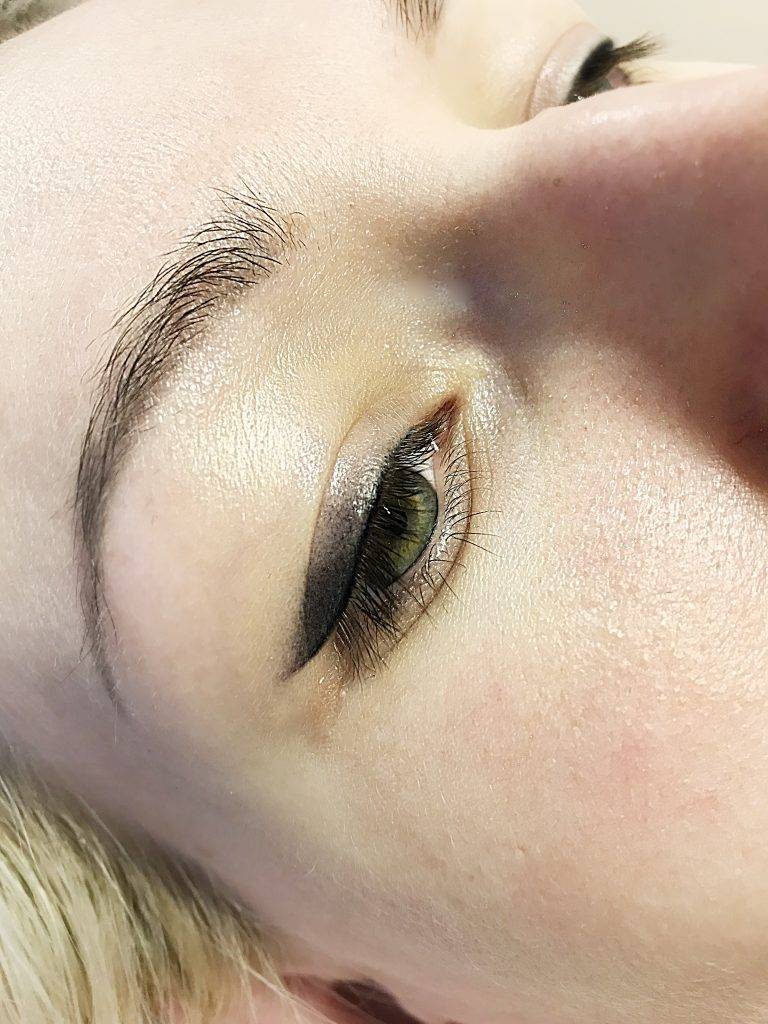 После вычищение пигмента можно будет сделать исправление перманентного макияжа: вывести стрелочку в тоненький хвостик.