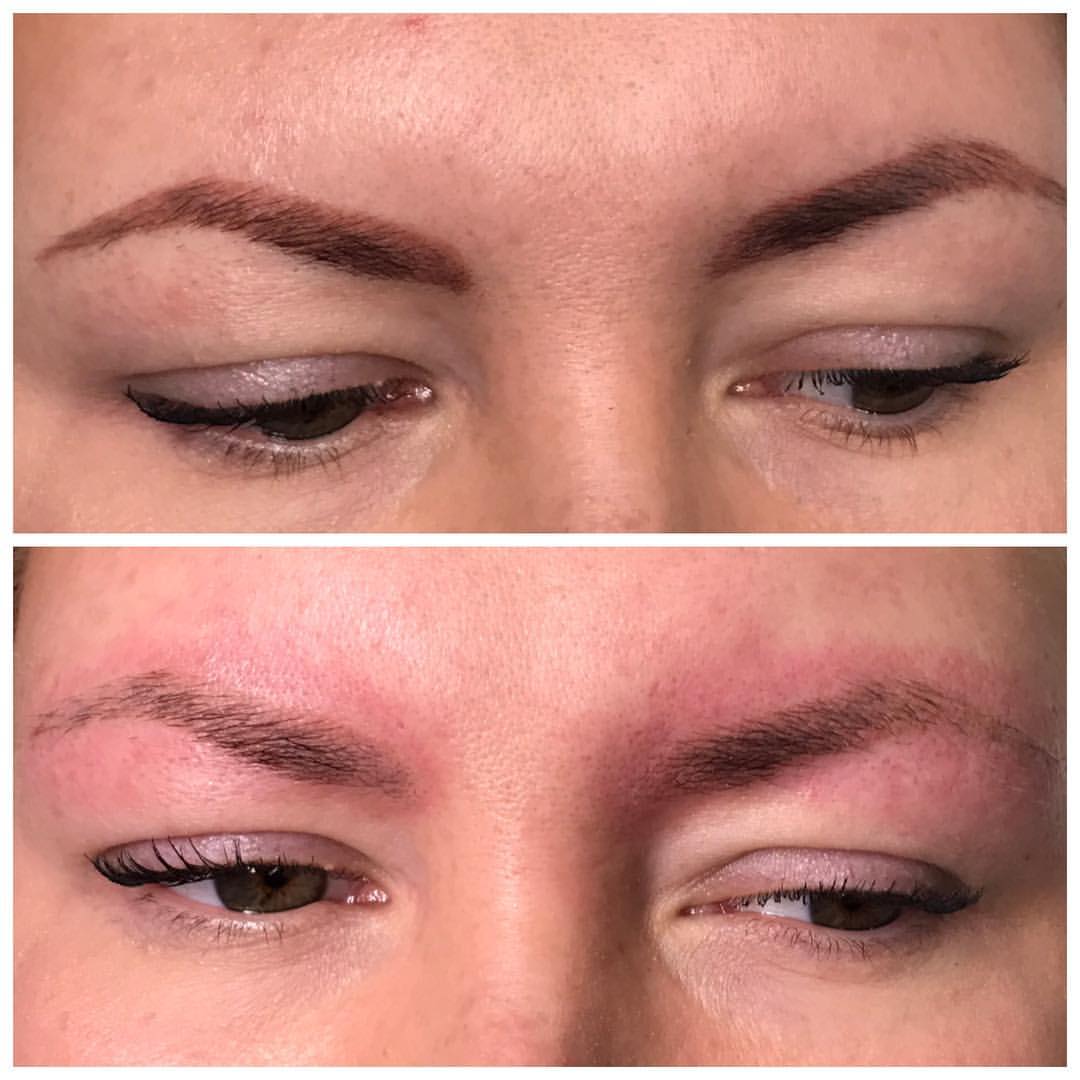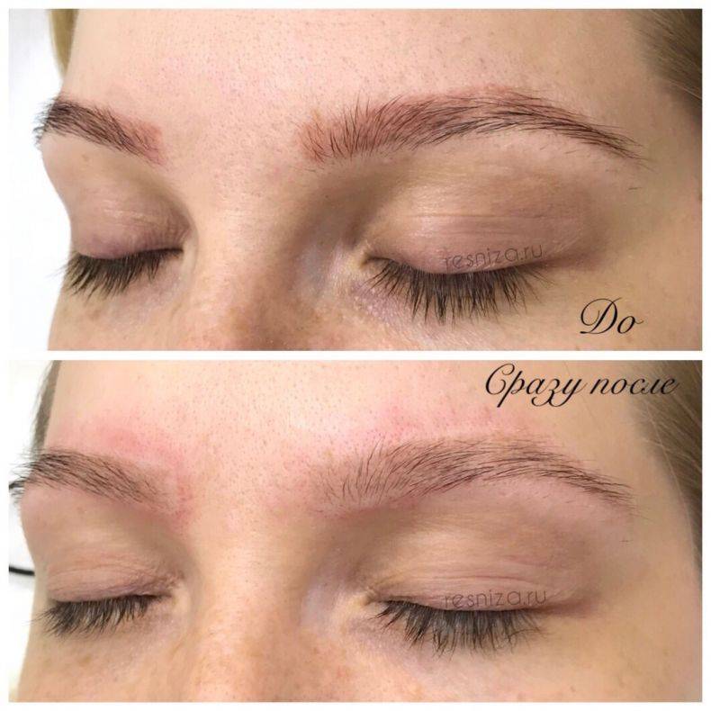 Как выглядит татуаж бровей до сеанса и итог после, можно увидеть на фото.