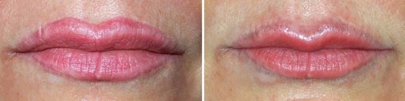 Если по завершении процедуры возникает незначительная припухлость, накладывают лед. Наглядный результат смотрите на фото до и после лазерного удаления татуажа губ.
