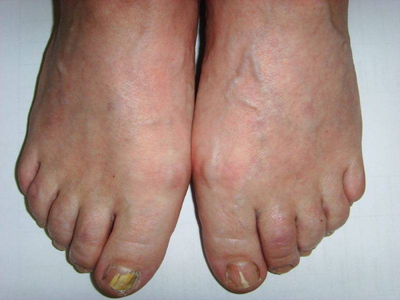 - Анатомически тесное прилегание пальцев, плоскостопие, деформация костей стоп.