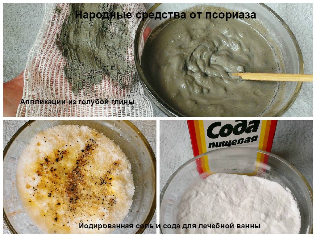 | Голубая глина | Голубая глина и столовый уксус разводится в соотношении 1:3 и добавляют соль (крупную морскую) до консистенции густой сметаны. Кашица наносится на очаги поражения на 6 часов | 2 недели |