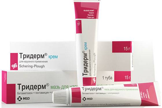 Глюкокортикостероиды. Используются гормональные мази с противовоспалительным, противозудным, антиаллергенным эффектом. К ним относятся Преднизолоновая мазь, Синафлан, Элоком, Акридерм. Мазь Тридерм, кроме стероидного компонента, содержит антибиотик и противогрибковый препарат. Эффективным средством является лечебный лак для ногтей Клобетазол.